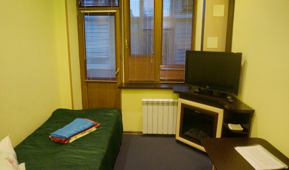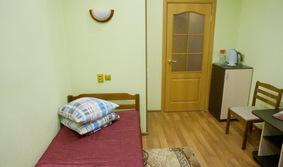 Площадь номера - 10 кв.м. 1 осн. место. 1 доп. место. Балкон. Мебель: вешалка, зеркало, кровать односпальная, прикроватная тумбочка, стол, стул, шкаф. Оборудование: кондиционер, сейф, телевизор, холодильник, чайный набор посуды, электрочайник. Санузел: с душем, туалетные принадлежности, фен. Сервис: смена полотенец, смена постельного белья, уборка номера.