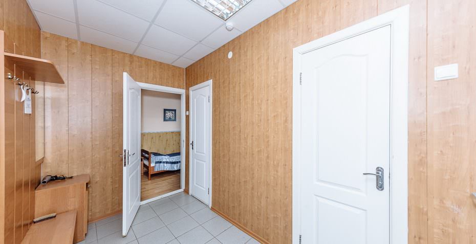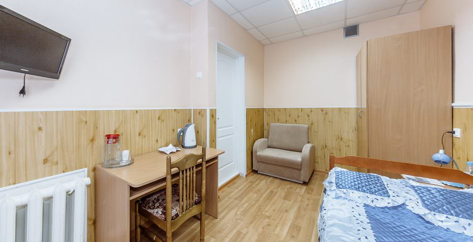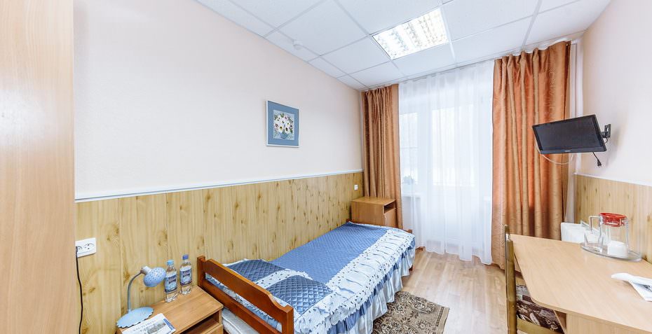 2 осн. места. 1 доп. место. Мебель: вешалка, зеркало, кресло-кровать, кровать односпальная, прикроватные тумбочки, стол, стулья, шкаф. Оборудование: мини-холодильник, телевизор, чайный набор посуды, электрочайник. Санузел на блок. Сервис: смена полотенец, смена постельного белья, уборка номера.